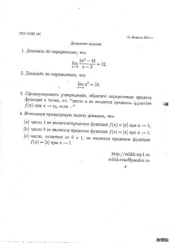 | Из задачника по матанализу: Глава 2, параграф 2, задание 2, задачи: 1(2), 2(2), 3, 4(1).